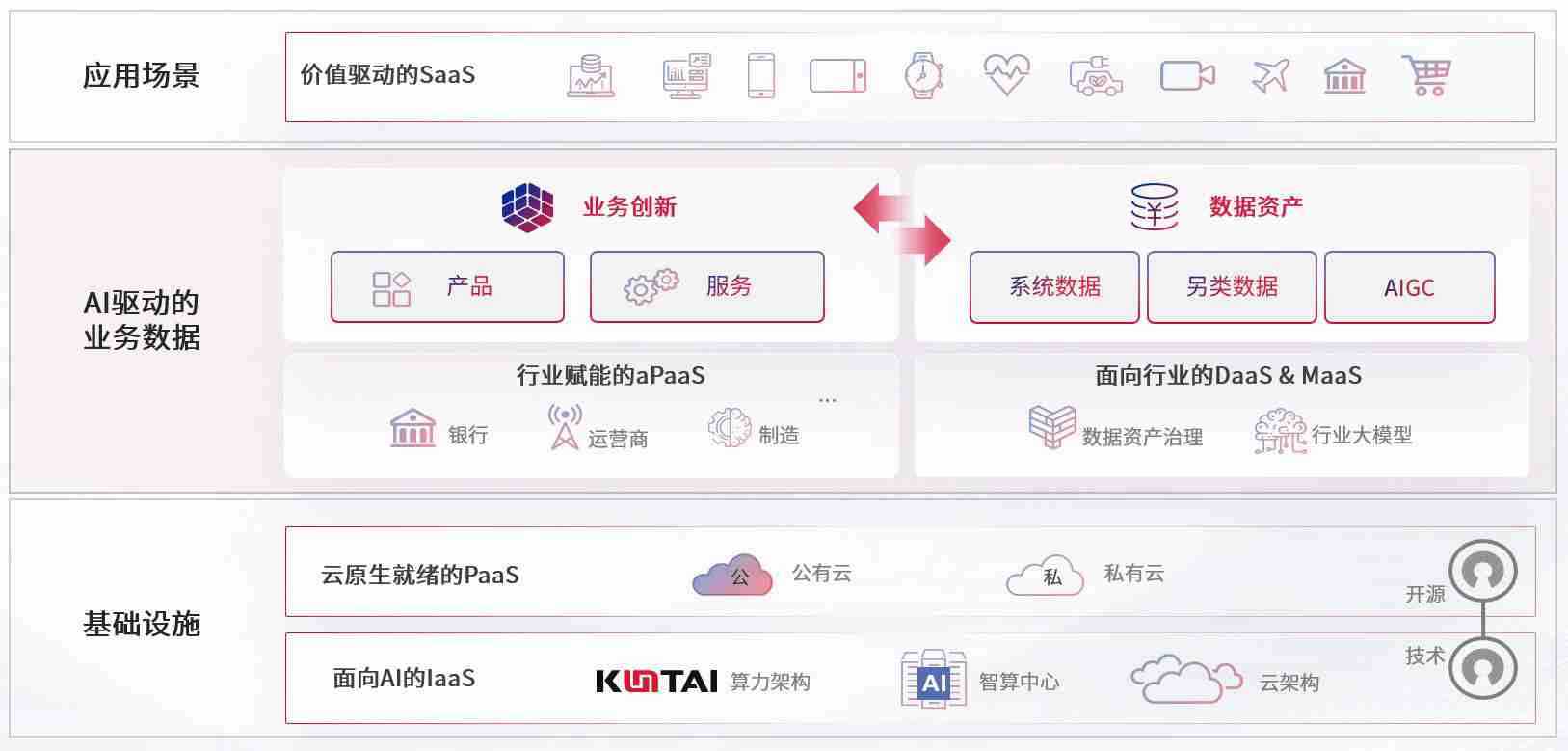 数字时代,,,围绕企业数字化转型的关键要素,,,,UEDBET数码开创性的提出数云融合战略和技术体系框架,,,着力在云原生、、、、数字原生、、AI原生和信创产业上架构产品和服务能力,,,为处在不同数字化转型阶段的快消零售、、汽车、、、、金融、、、医疗、、政企、、、教育、、运营商等行业客户提供泛在的敏捷IT能力和融合的数据驱动能力,,,,构建跨界融合创新的数字业务场景和新业务模式,,,,助力企业级客户建立面向未来的核心能力和竞争优势,,,全面推动社会的数字化、、、、智能化转型升级。。。。